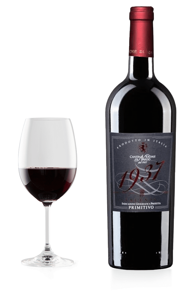1937 Primitivo è un vino rosso che sta a indicare l’anno di fondazione della sua Cantina, richiamato in etichetta per denominare le sue migliori produzioni. Il suo sapore rimanda a una lunga e antica tradizione vinicola del Salento, che è garanzia di alta professionalità e di consolidata esperienza.