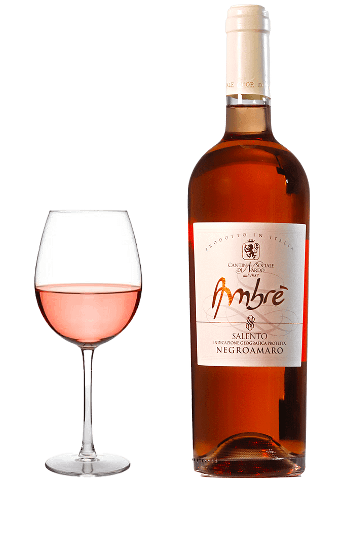 L’Ambrè è un vino rosato ottenuto da uve 100% Negroamaro, che già alla vista ne svela la piena tipicità; un brillante rosa corallo. Protagonisti sono i profumi di frutta: fragoline, melagrana, lamponi ed arancia sanguinella.